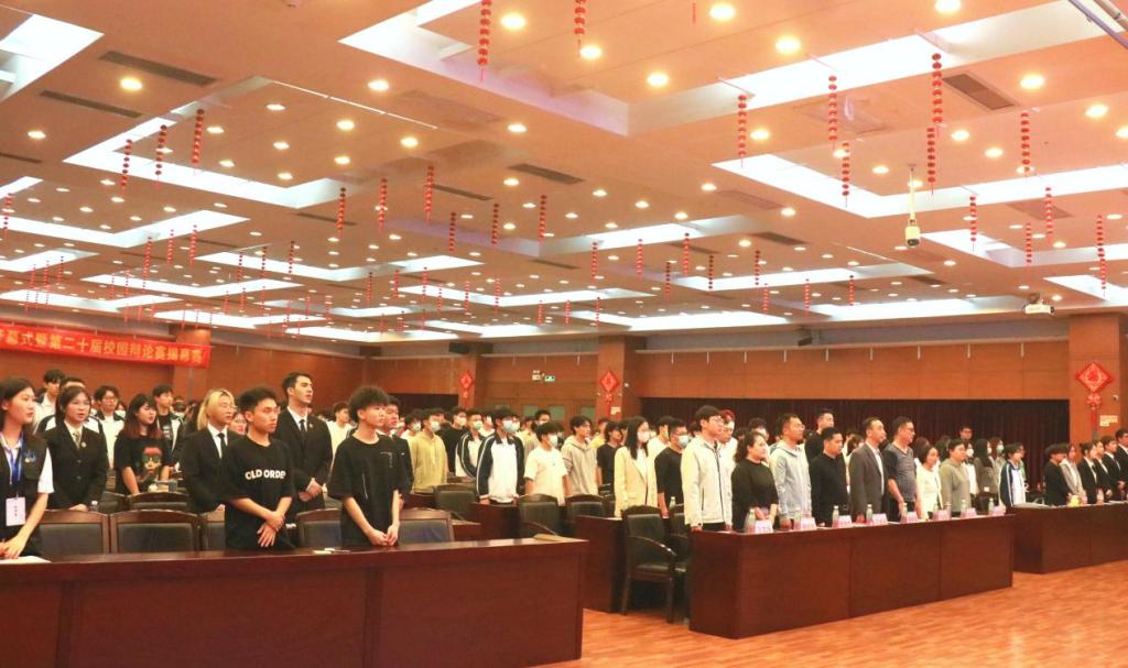 第二十届校园辩论赛由各二级学院院赛选拔推荐的代表队参赛,此次揭幕赛由建筑工程学院代表队和外语外贸学院代表队就“大学生去城市拼搏还是扎根农村发展更能体现价值”为题展开辩论,学校图书馆馆长姜新春,人文学院中文教研室刘向阳副教授、李芬芳副教授,马克思主义学院办公室主任梁均玲担任评委。比赛现场,两队辩手反应迅速,巧辩如流,辩论现场气氛激烈,妙语频出,赢得了观众的阵阵掌声,最终外语外贸学院代表队初战告捷。